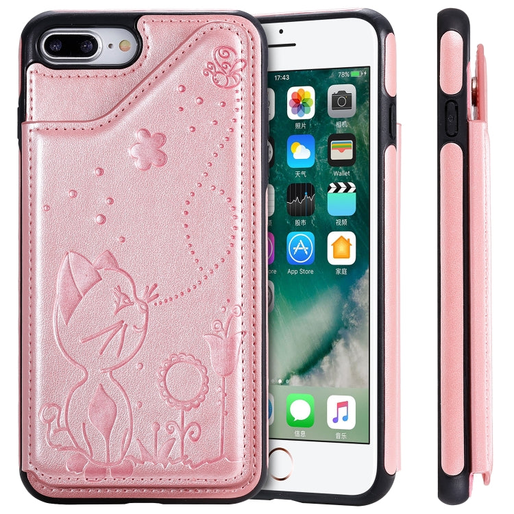 Estuche protector para iPhone 8 Plus y 7 Plus con patrón de abeja y gato, ranuras para tarjetas y marco de fotos (Oro Rosa)