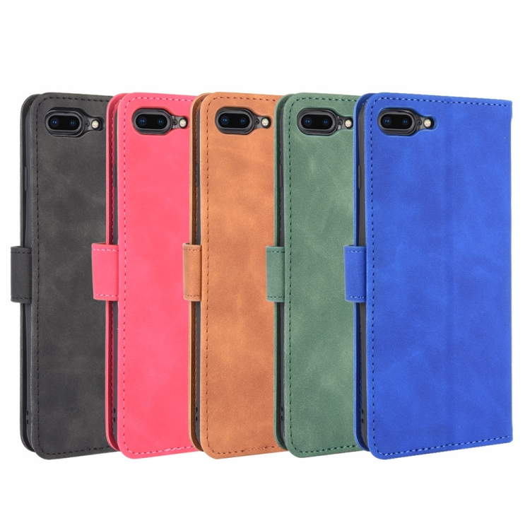 Funda para iPhone 8 Plus y 7 Plus Hebilla Magnética Piel Sintética Textura Becerro Abatible Horizontal con Soporte Ranuras y Billetera (Azul)