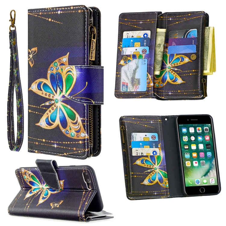 Funda de Cuero iPhone 8 Plus y 7 Plus Patrón de Dibujo de Colores Cremallera con Tapa Horizontal Soporte Ranuras Tarjetas Billetera (Mariposa Grande)