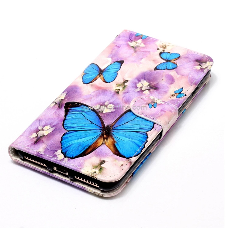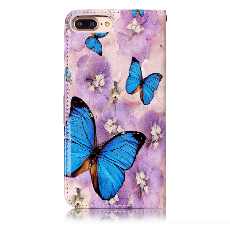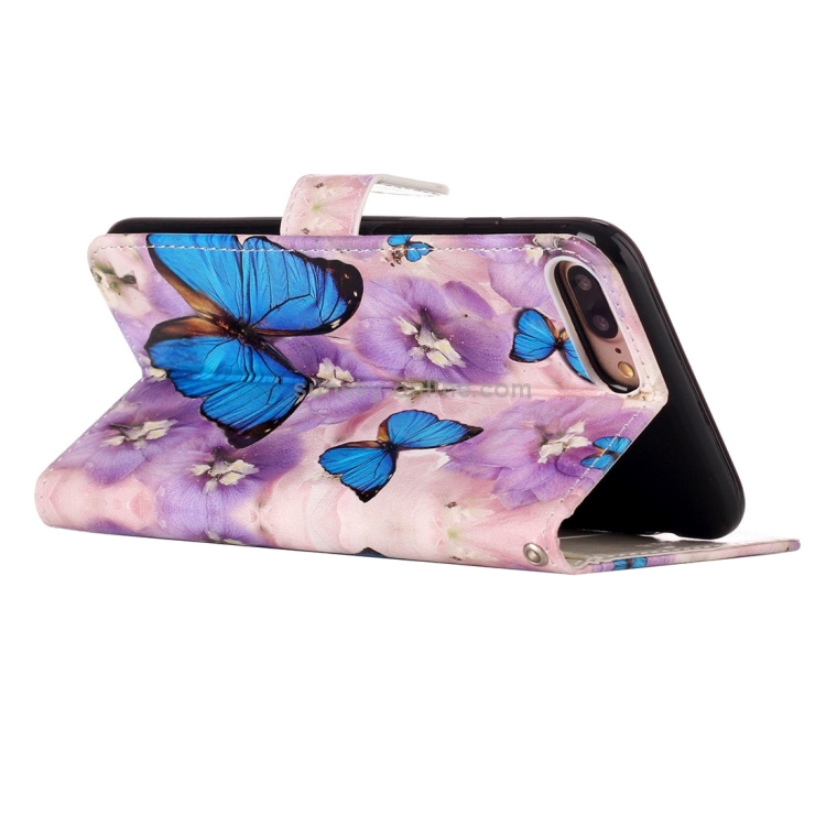 Funda de Cuero iPhone 8 Plus y 7 Plus Patrón Mariposa y Elefante con Tapa Horizontal Soporte Ranuras y Marco de Fotos (Morado)