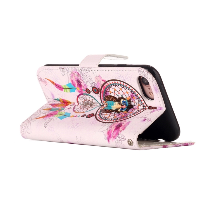Funda de Cuero iPhone SE 2020 8 7 Colorido Atrapasueños Búho Tapa Horizontal Soporte Ranuras Tarjetas Billetera Marco Fotos