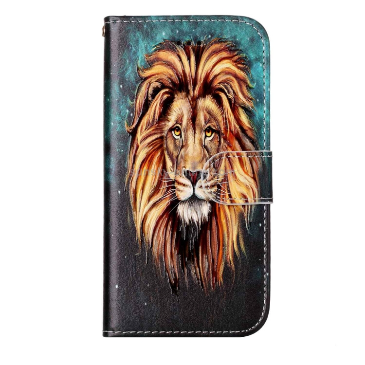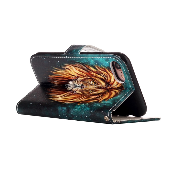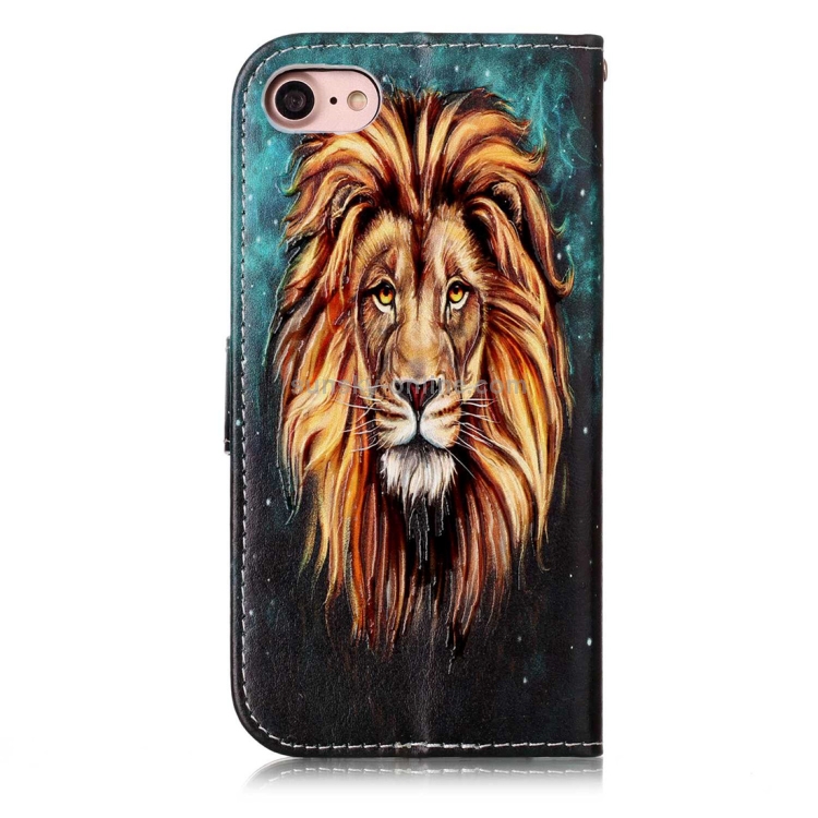 Funda de Cuero para iPhone SE 2020 8 7 con Patrón de León y Elefante, Tapa Horizontal, Soporte, Ranuras para Tarjetas y Billetera