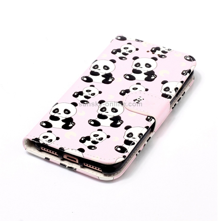 Funda de cuero para iPhone SE 2020 8 7 con patrón de panda y elefante, tapa horizontal, soporte, ranuras para tarjetas, billetera y marco de fotos