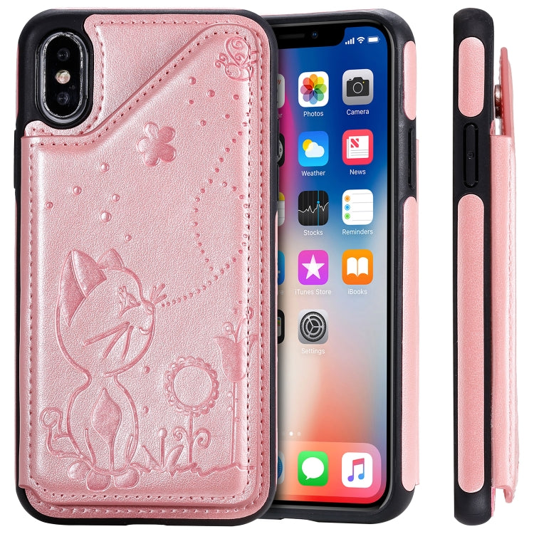 Estuche protector para iPhone X Cat Bee Patrón en Relieve a Prueba de Golpes con Ranuras para Tarjetas y Marco de Fotos (Oro Rosa)