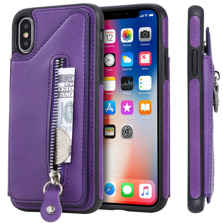 Funda Protectora para iPhone X Doble Hebilla Cremallera a Prueba de Golpes (Púrpura)