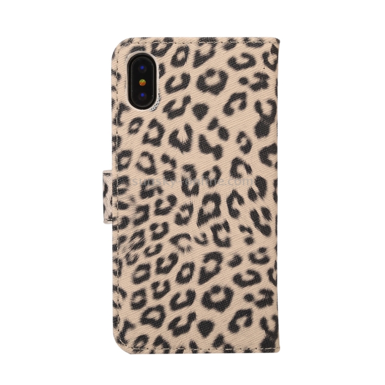 Funda protectora para iPhone X Leopard Pattern PU + PC con Tapa Horizontal, Soporte y Ranuras para Tarjetas (Marrón)