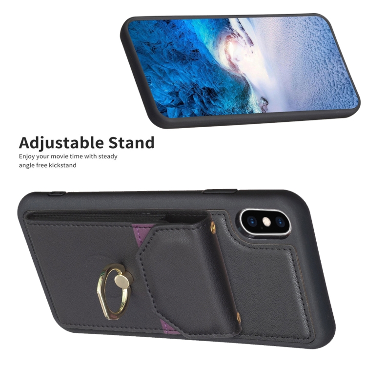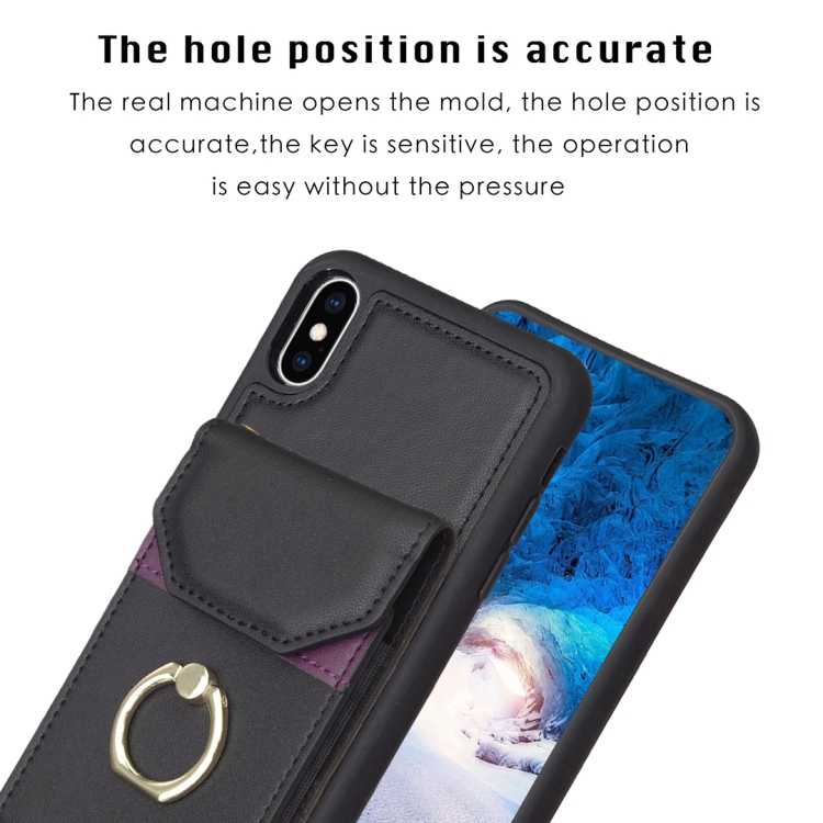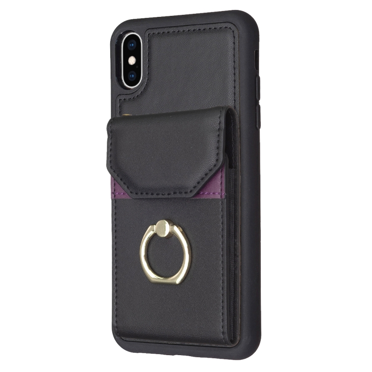 Funda para Teléfono Bf29 para iPhone X y Xs con Soporte para Anillo y Bolsa para Tarjeta (Negro)