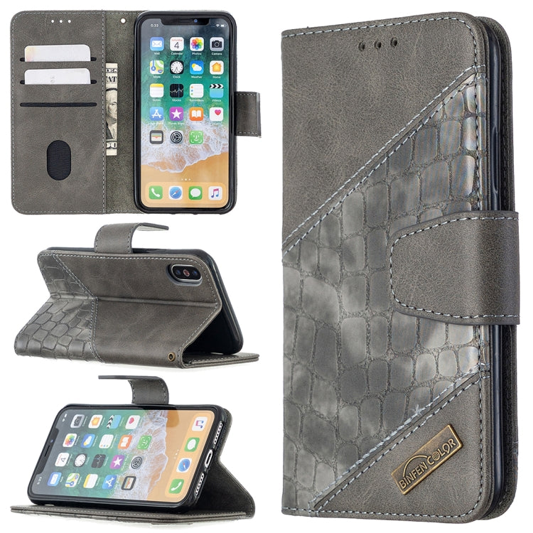 Funda de Cuero de PU para iPhone X / Xs Textura de Cocodrilo con Tapa Horizontal Billetera Soporte y Ranuras para Tarjetas (Gris)