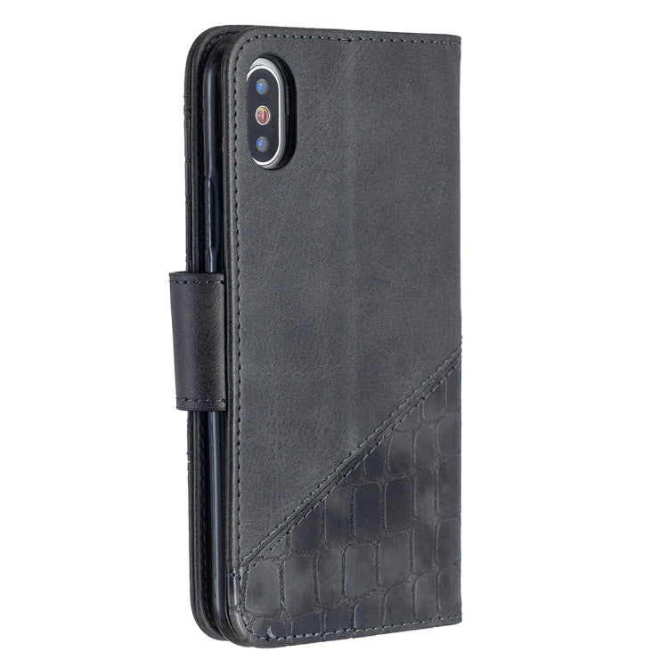 Funda de Cuero de Pu para iPhone X Xs con Textura de Cocodrilo, Tapa Horizontal, Billetera, Soporte y Ranuras para Tarjetas (Negro)