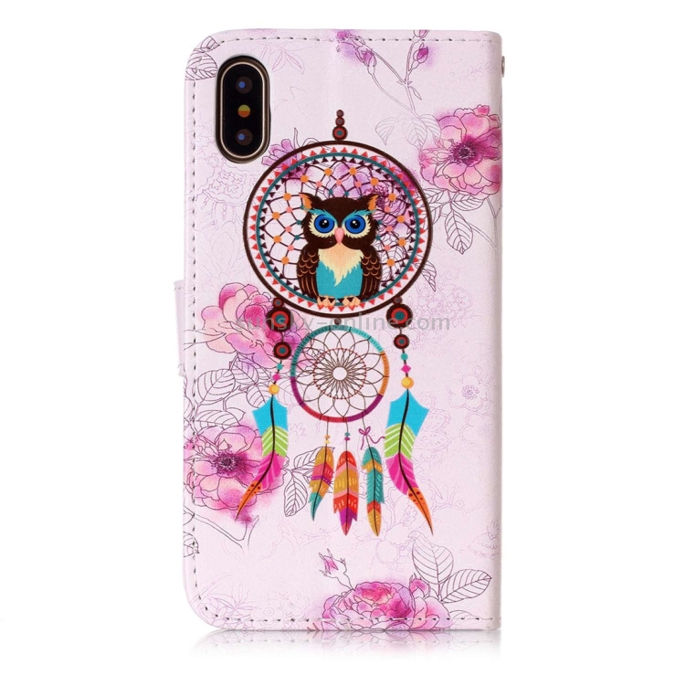 Funda de Cuero para iPhone X Xs Colorful Dream Catcher Owl con Tapa Horizontal Soporte Ranuras Tarjetas Monedero Marco Fotos