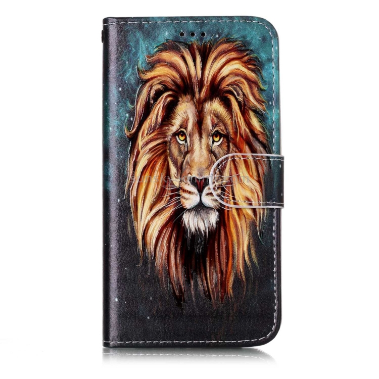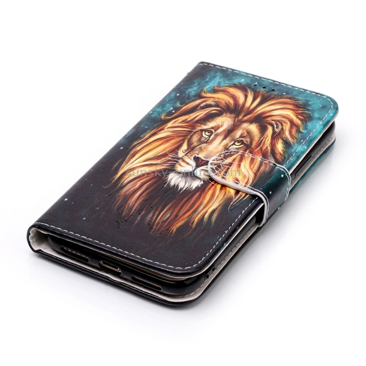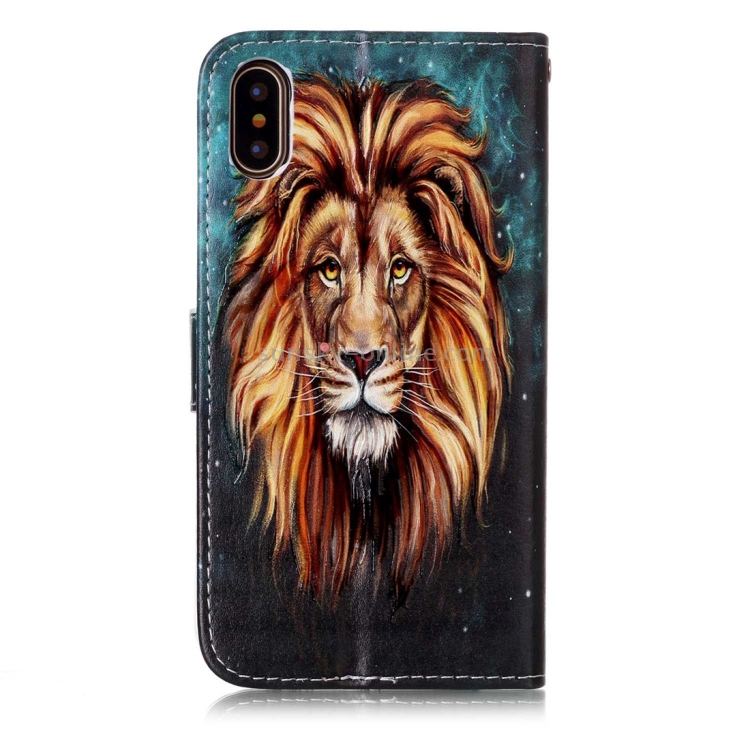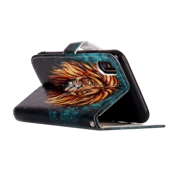 Estuche de Cuero para iPhone X Xs con Tapa Horizontal Patrón León Soporte Ranuras Tarjetas Billetera Marco Fotos