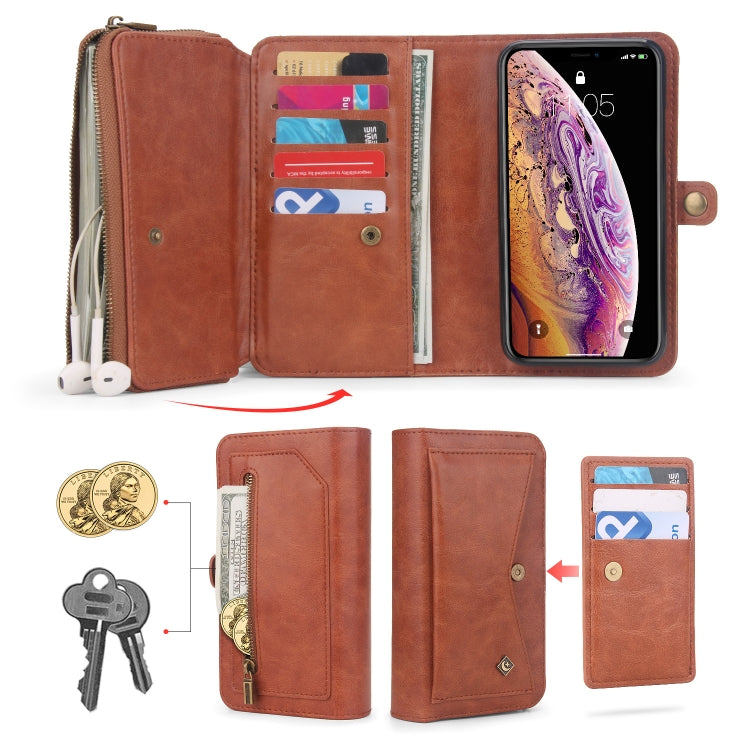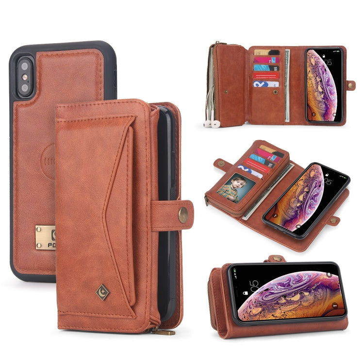 Funda de Cuero para Teléfono iPhone X Xs con Billetera y Cremallera Multifuncional (Marrón)