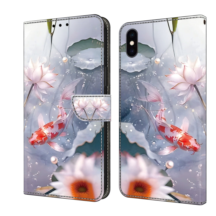 Funda de Cuero para iPhone X / Xs con Cristales Pintada (Koi)