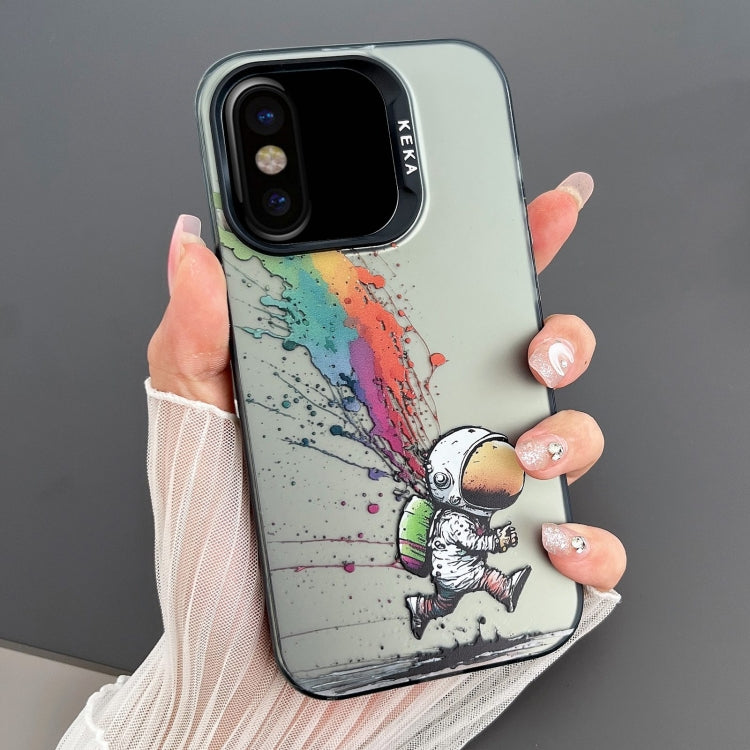 Pour iPhone X/XS IMD Animal Graffiti TPU + PC Coque de téléphone double face (astronautes en cours d'exécution)