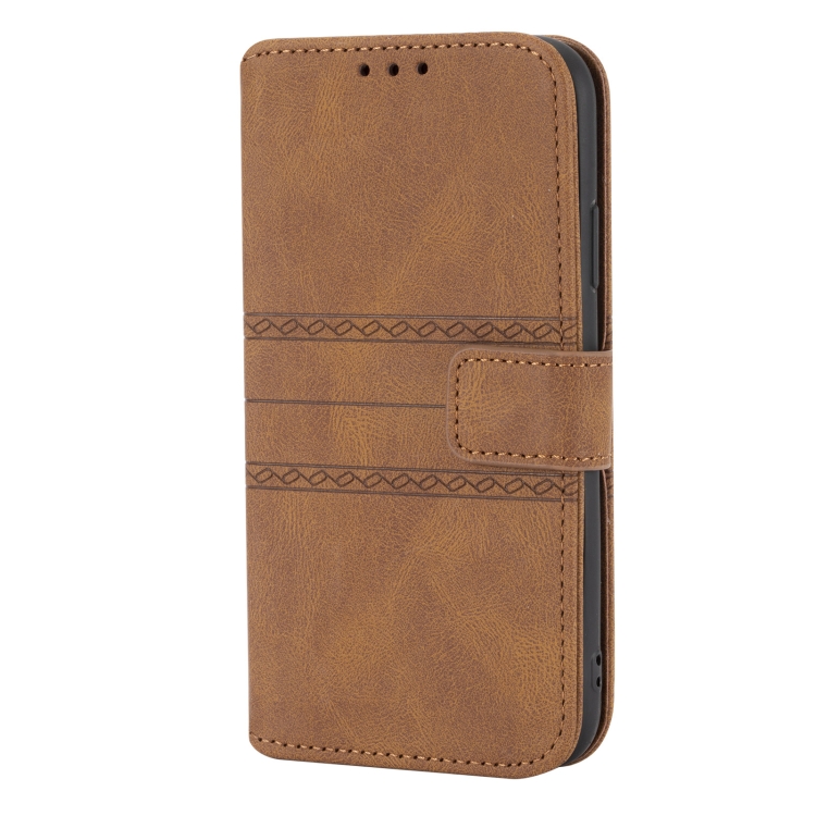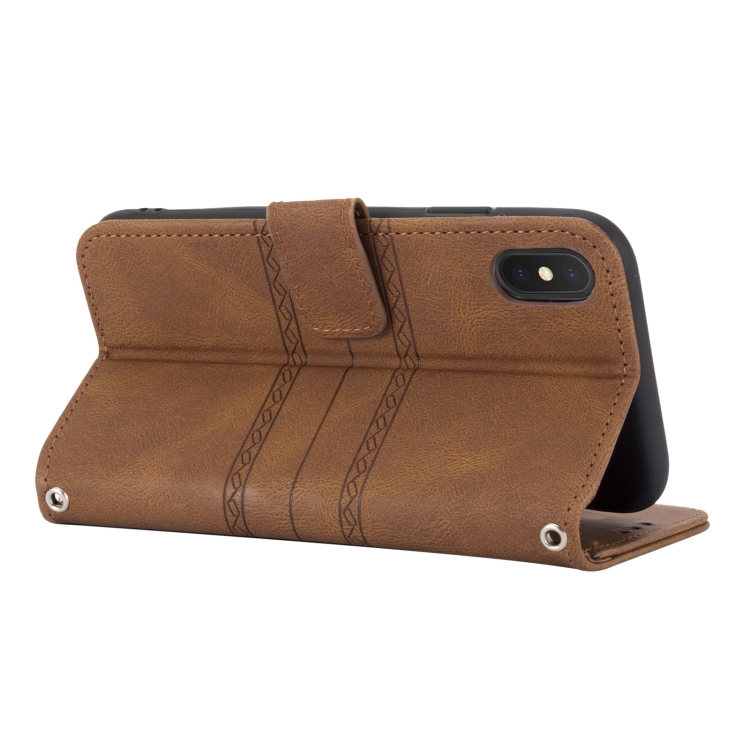 Funda de Cuero para iPhone X / Xs Hebilla Magnética a Rayas Pu + TPU con Tapa Horizontal Soporte Ranura Tarjeta Billetera Marco Fotos Honda (Marrón)