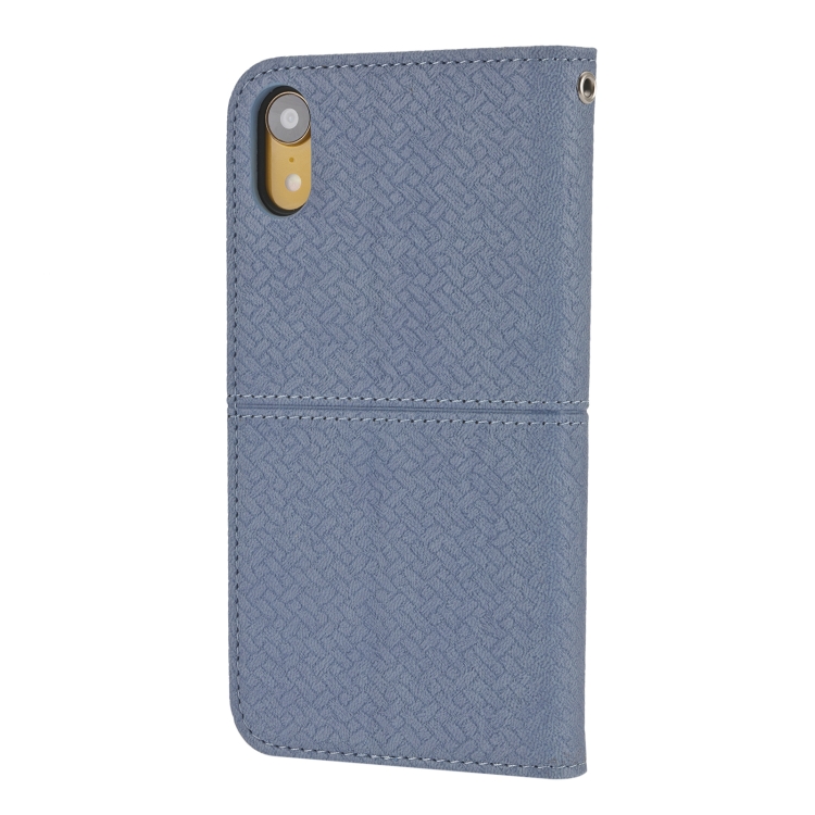 Funda de Cuero Pu para iPhone X Xs Textura Tejida Costura Tapa Horizontal Magnética Soporte Ranuras Tarjetas Billetera Cordón (Gris)