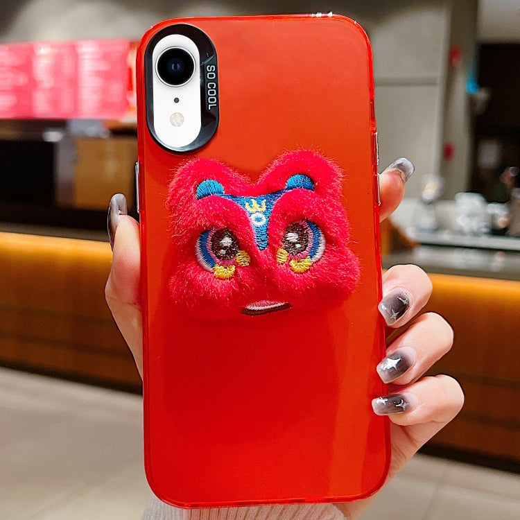 Funda para Teléfono iPhone Xr Lion Dance Plush Doll Año Nuevo (León Rojo con Espalda Roja)