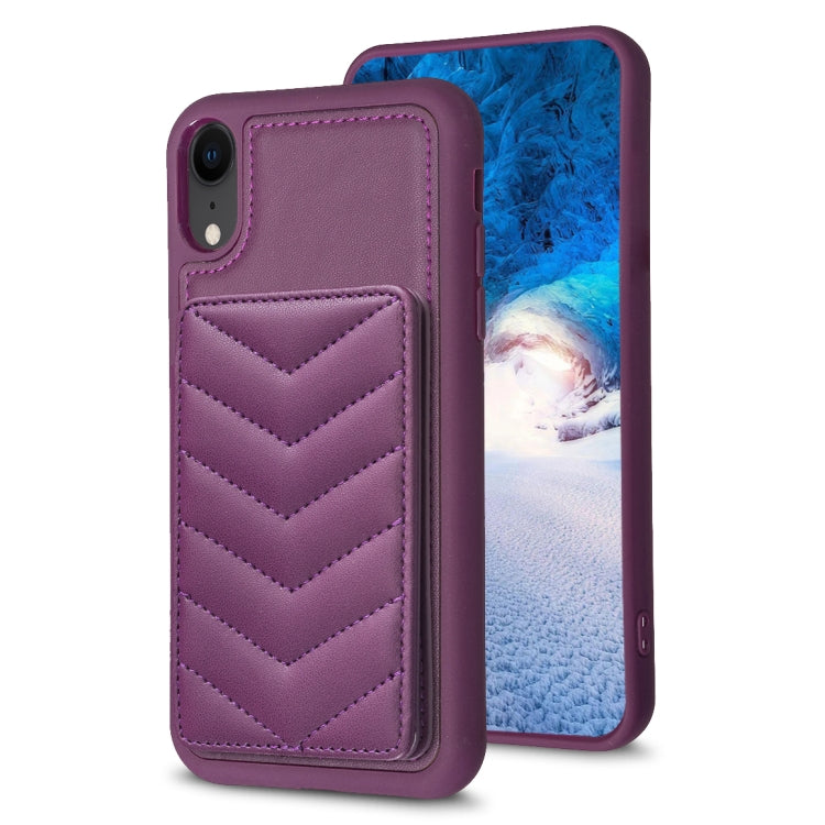 Funda para Teléfono iPhone Xr Bf26 Wave Pattern Card Bag Holder (Morado Oscuro)