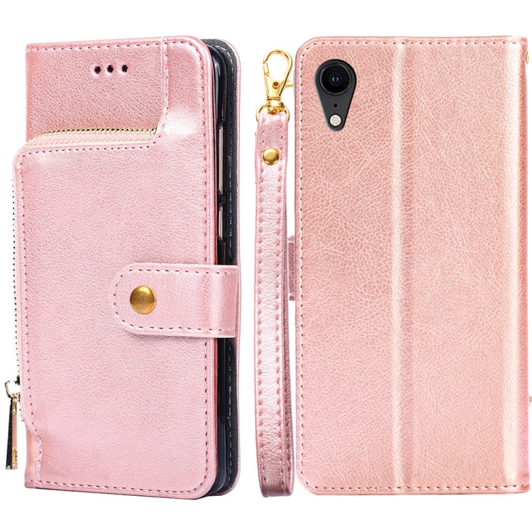 Bolsa con Cremallera PU + TPU Funda de Cuero con Tapa Horizontal para iPhone Xr con Soporte Ranura Tarjeta Billetera y Cordón (Dorado)