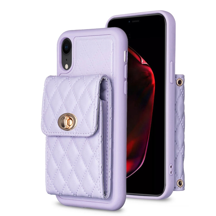 Caja de teléfono de cuero Rómbica para iPhone Xr billetera con hebilla de metal vertical (Púrpura)