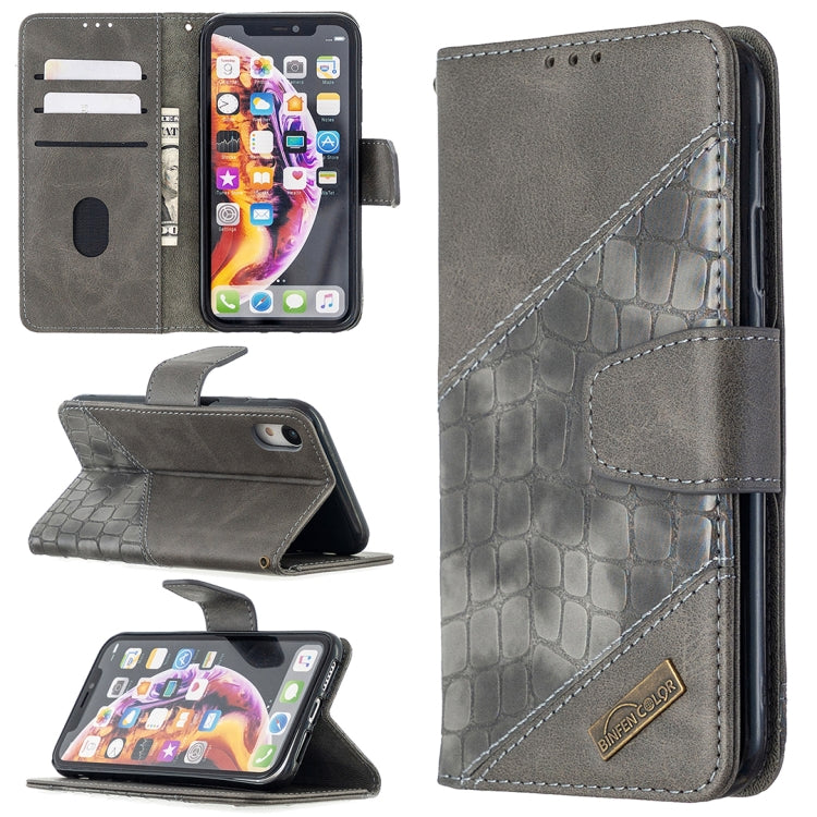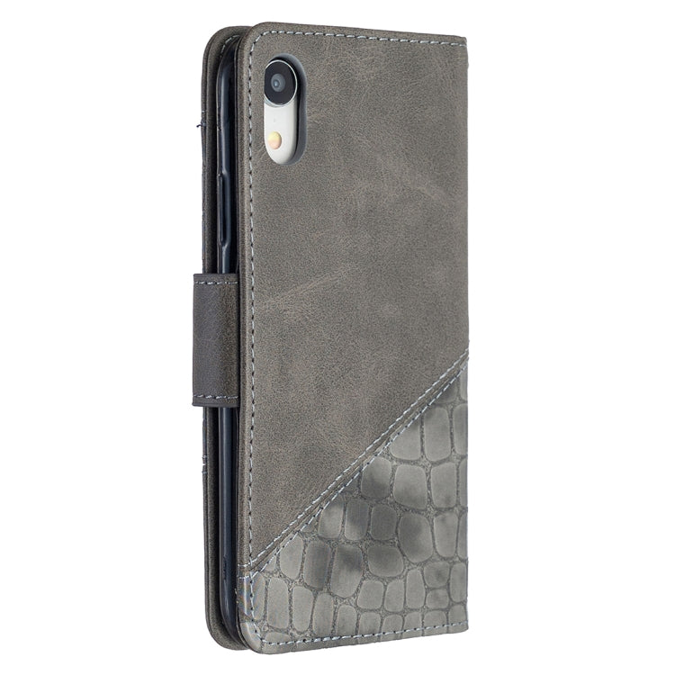 Funda de Cuero de PU para iPhone Xr con Textura de Cocodrilo, Tapa Horizontal, Billetera, Soporte y Ranuras para Tarjetas (Gris)