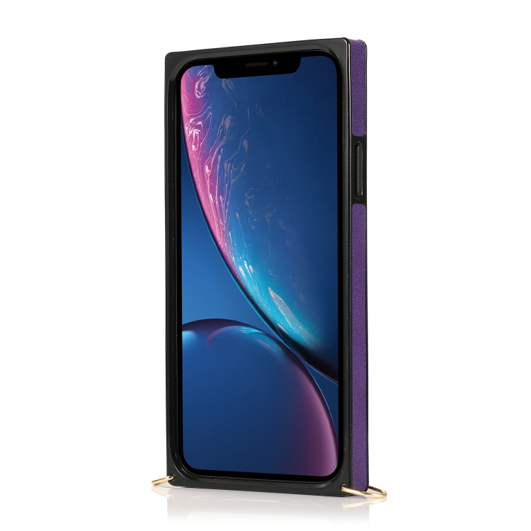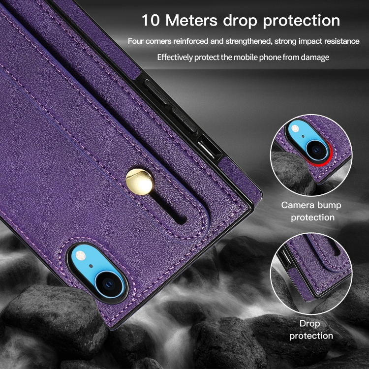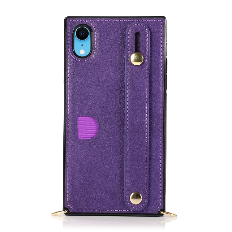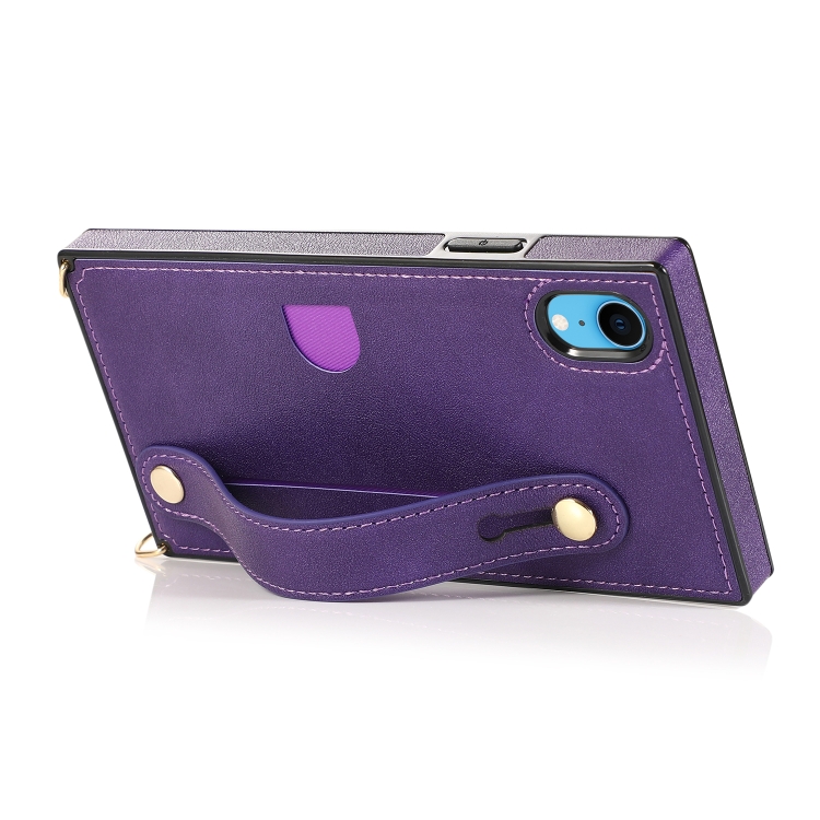 Funda para iPhone Xr Correa para Muñeca PU TPU Estuche Protector a Prueba de Golpes con Cordón Cruzado Soporte y Ranura para Tarjeta (Púrpura)