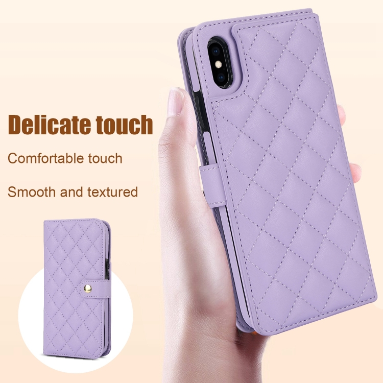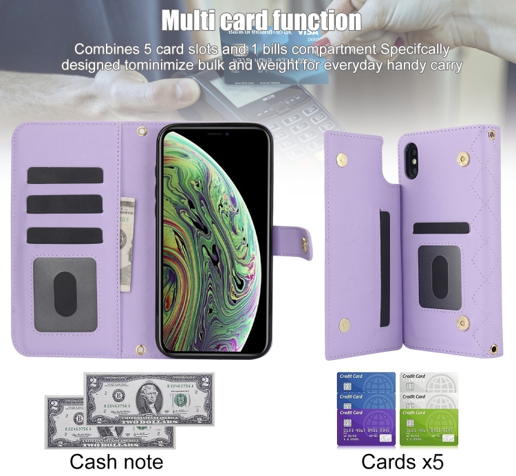 Estuche para Teléfono iPhone Xr Crossbody Cuero Rómbico Multifunción (Púrpura)