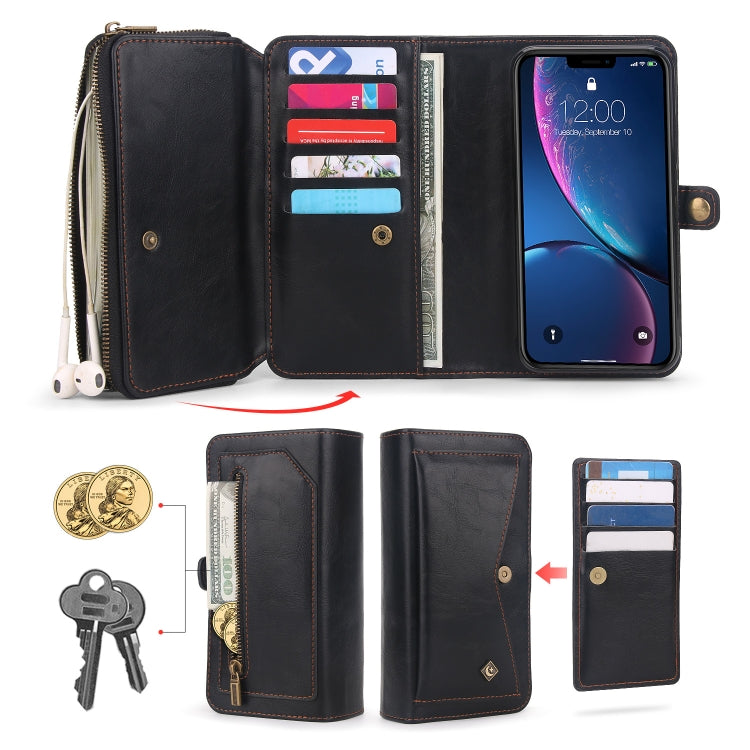 Funda de Cuero para iPhone Xr con Billetera y Cremallera Multifuncional (Negro)
