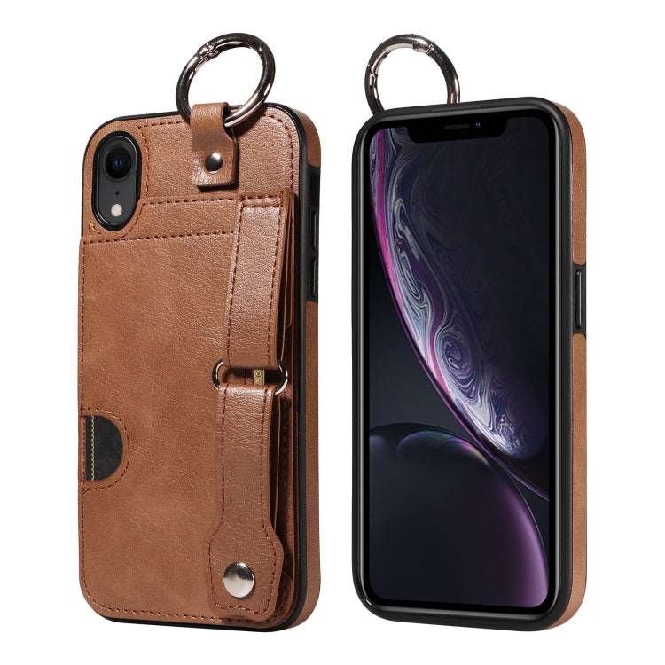 Funda para Teléfono iPhone Xr con Anillo y Ranura para Tarjeta con Textura de Pantorrilla (Marrón)