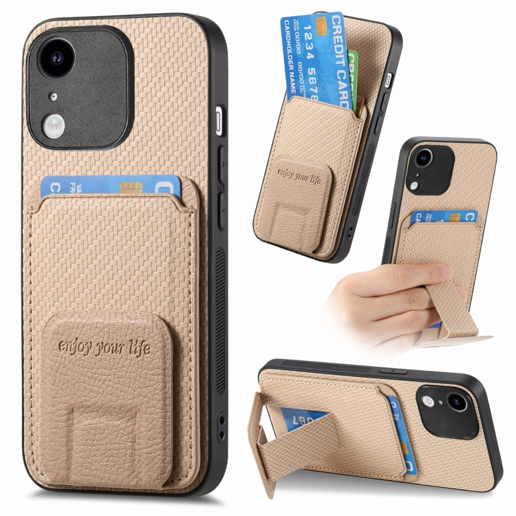 Funda para Teléfono iPhone Xr Soporte Plegable Bolsa para Tarjetas Fibra de Carbono (Caqui)