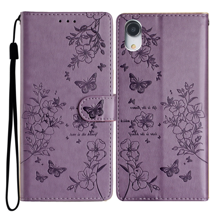 Funda para Teléfono iPhone Xr Cuero Relieve Flor de Amor y Mariposa (Púrpura)