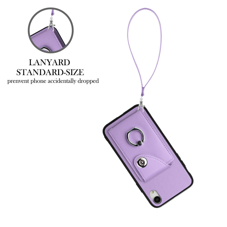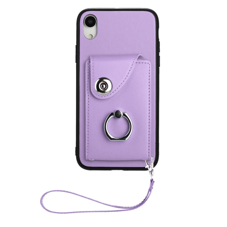Funda para Teléfono iPhone Xr de PU con Soporte para Anillo y Bolsa para Tarjeta con Cordón (Púrpura)