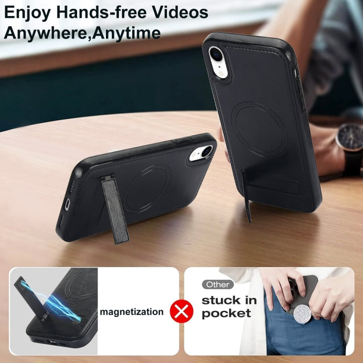 Funda para Teléfono iPhone Xr Magsafe Soporte Invisible Cuero Retro (Negro)