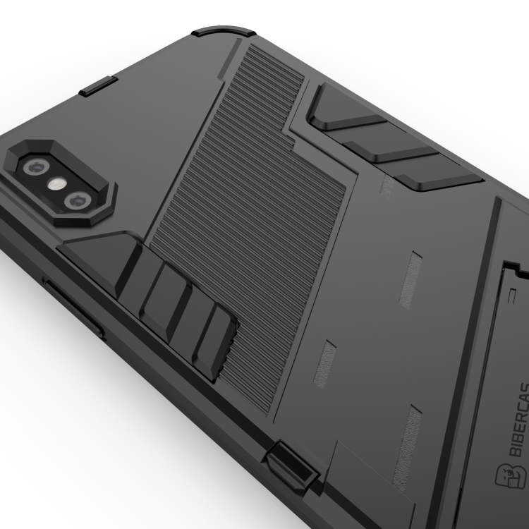 Estuche para iPhone Xr Punk Armor 2 en 1 PC + TPU a Prueba de Golpes con Soporte Invisible (Negro)