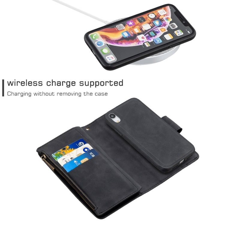 Funda para iPhone Xr Cuero PU Cremallera Magnética Tapa Horizontal Ranuras Tarjetas Soporte Billetera Marco Fotos Cordón (Negro)