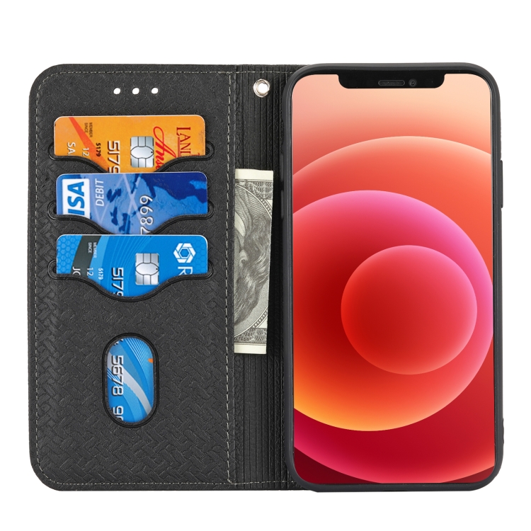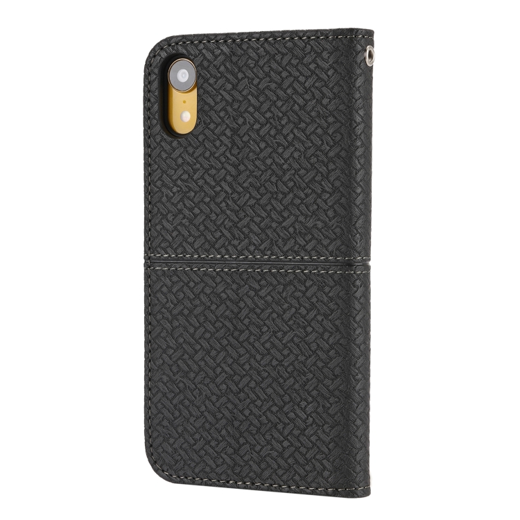 Funda para iPhone Xr PU Cuero Textura Tejido Costura Magnética Horizontal Flip con Soporte Ranuras Tarjetas Billetera y Cordón (Negro)