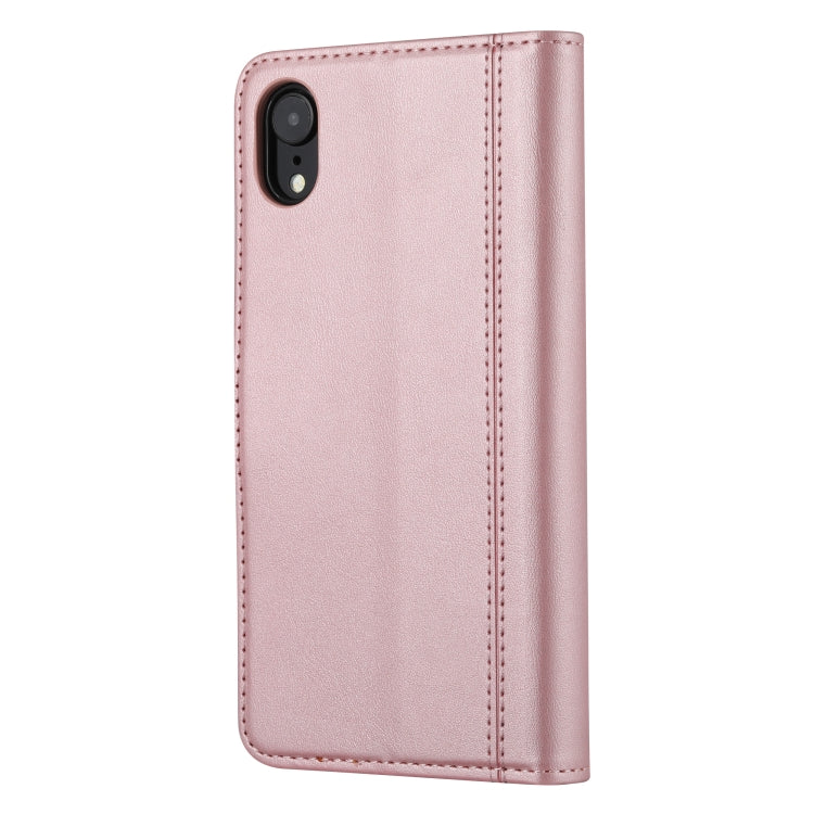 Funda de Cuero para iPhone Xr Textura de Pantorrilla Cierre Doble Pliegue con Tapa Horizontal Marco de Fotos Soporte Ranuras para Tarjetas Billetera (Oro Rosa)