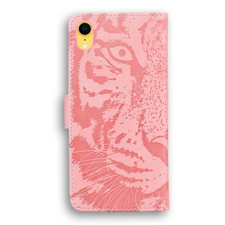 Funda de Cuero para iPhone Xr Tiger Embossing con Tapa Horizontal, Soporte y Ranuras para Tarjetas (Rosa)
