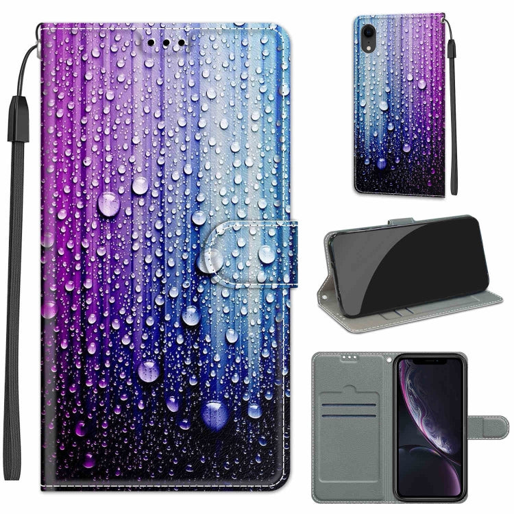 Funda para iPhone Xr Cuero de PU Voltaje Dibujo Coloreado Cierre Magnético Tapa Horizontal Soporte Ranuras para Tarjetas (Purple Blue Water Drops)
