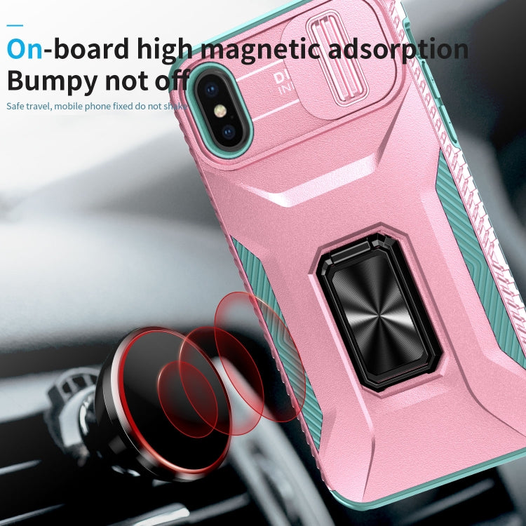 Funda para Teléfono iPhone Xs con Soporte Deslizante Camshield (Rosa + Gris Verde)