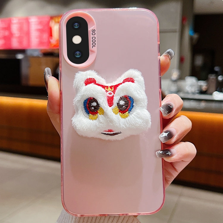 Funda para Teléfono iPhone Xs Max Lion Dance Plush Doll Año Nuevo (León Blanco con Espalda Rosa)