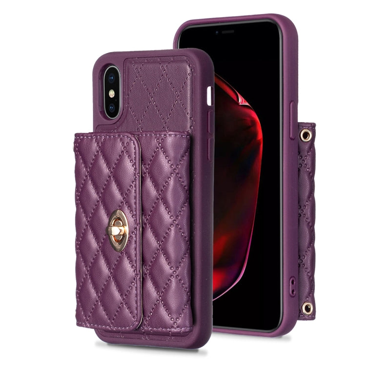 Caja de Teléfono iPhone Xs Max Cuero Rómbica Hebilla Metal Horizontal (Púrpura Oscuro)