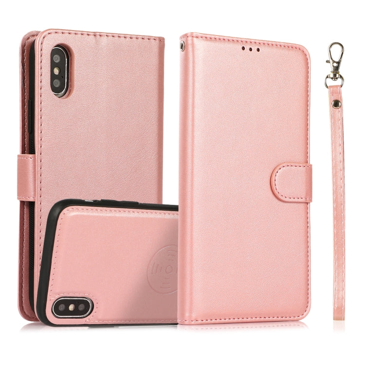 Funda para iPhone Xs Max Calf Texture 2 en 1 Cubierta Trasera Magnética Desmontable con Tapa Horizontal y Soporte (Oro Rosa)