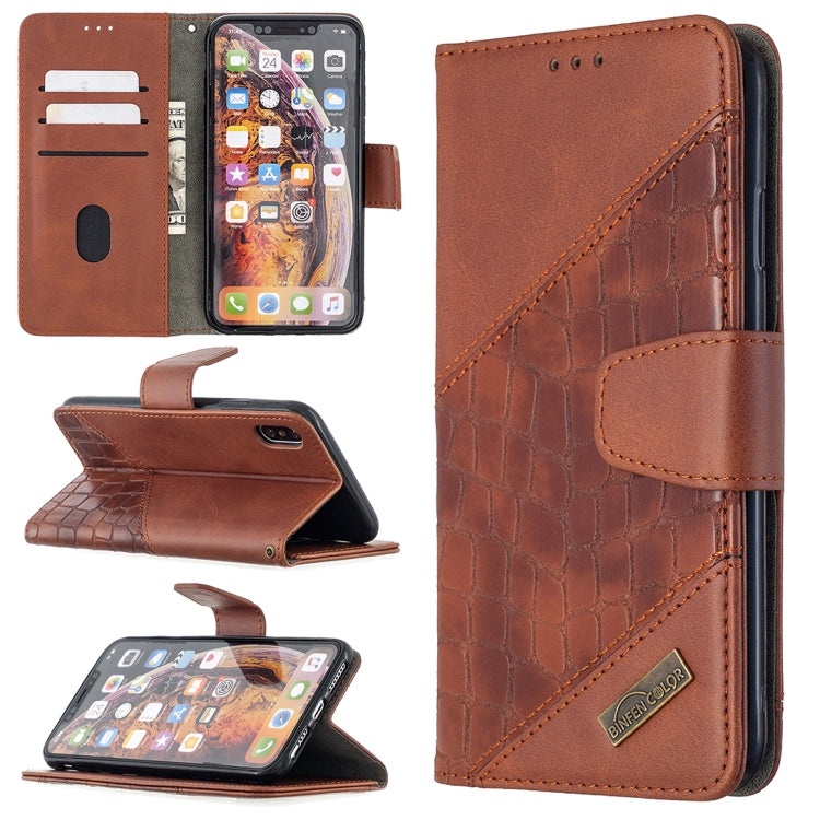 Funda para iPhone Xs Max Cuero PU Textura Cocodrilo Tapa Horizontal Billetera Soporte Ranuras Tarjetas (Marrón)
