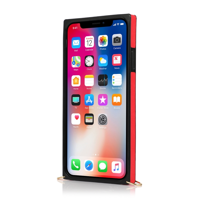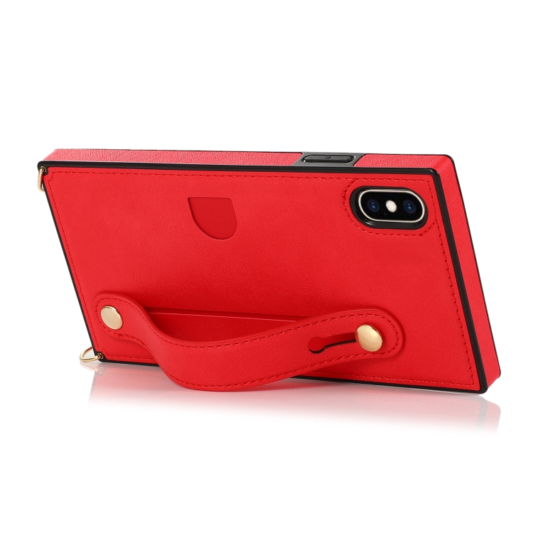 Funda para iPhone Xs Max Correa de Muñeca PU + TPU Estuche Protector a Prueba de Golpes con Cordón Cruzado y Ranura para Tarjeta (Rojo)