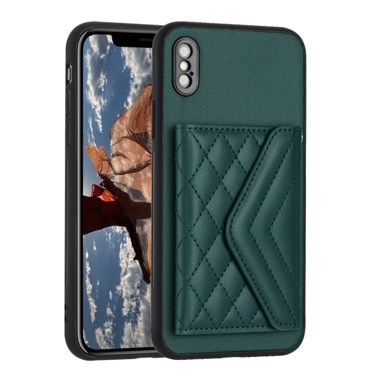 Estuche para Teléfono iPhone Xs Max con Protección Rfid Bolsa para Tarjetas Textura Rómbica Cordón Largo (Verde)