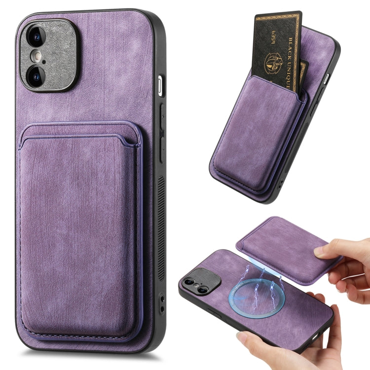 Funda de Teléfono para iPhone Xs Max Magnética con Bolso de Tarjeta de Cuero Retro (Púrpura)