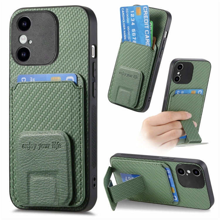 Funda para Teléfono iPhone Xs Max con Soporte Plegable y Bolsa para Tarjetas Fibra de Carbono (Verde)