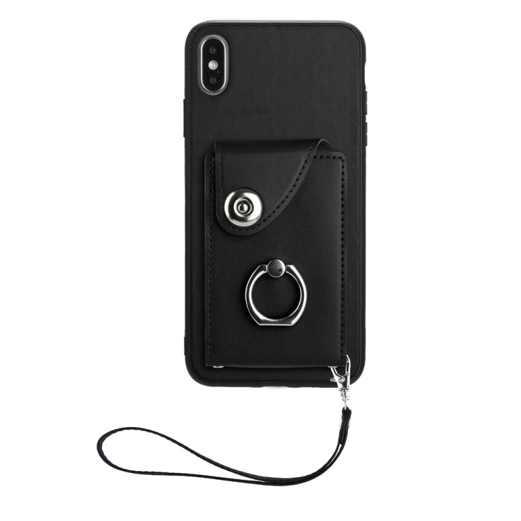 Funda para Teléfono iPhone Xs Max PU con Soporte para Anillo y Bolsa para Tarjeta con Cordón (Negro)