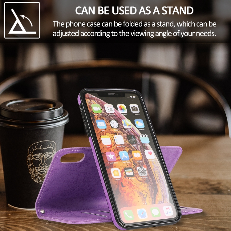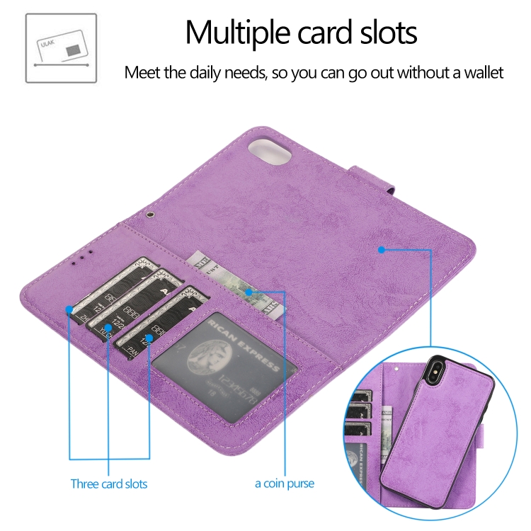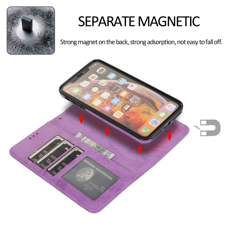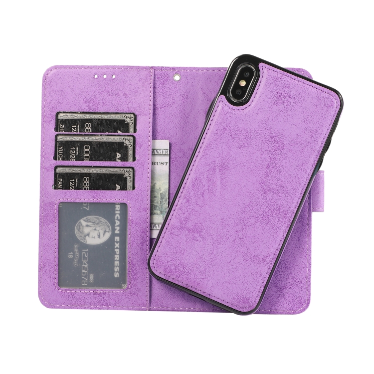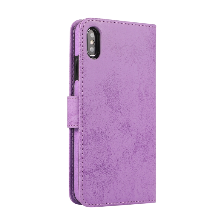 Funda para iPhone Xs Max Klt888-2 2 en 1 Cuero TPU PU Tapa Horizontal Magnética Soporte Ranuras Tarjetas Marco Fotos Billetera (Púrpura)
